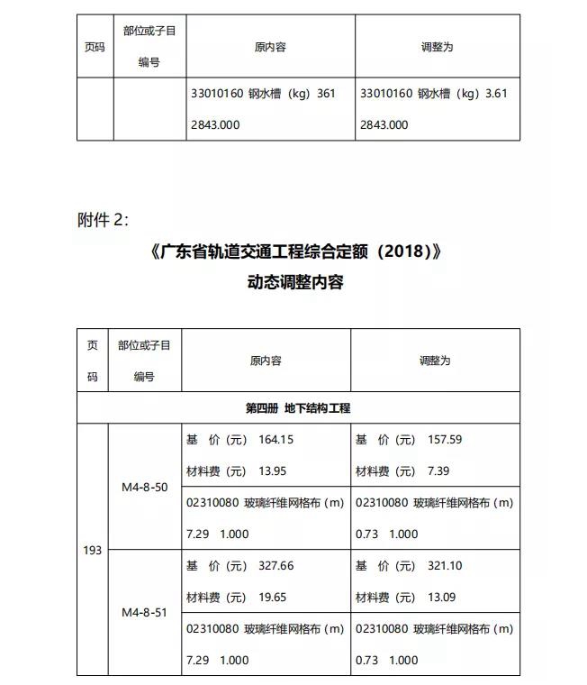 2、《廣東省軌道交通工程綜合定額(2018)》動(dòng)態(tài)調(diào)整內(nèi)容。