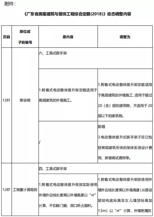 附件:《廣東省房屋建筑與裝飾工程綜合定額(2018)》動(dòng)態(tài)調(diào)整內(nèi)容。
