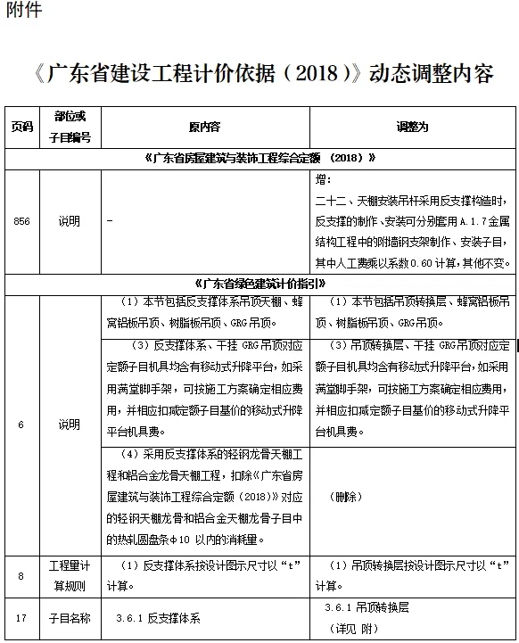 近期,我站組織專家研析了廣東省建設工程定額動態管理系統收集的反饋意見,現將《廣東省房屋建筑與裝飾工程綜合定額 (2018)》天棚工程、《廣東省綠色建筑計價指引》吊頂轉換層調整內容印發給你們,請遵照執行。