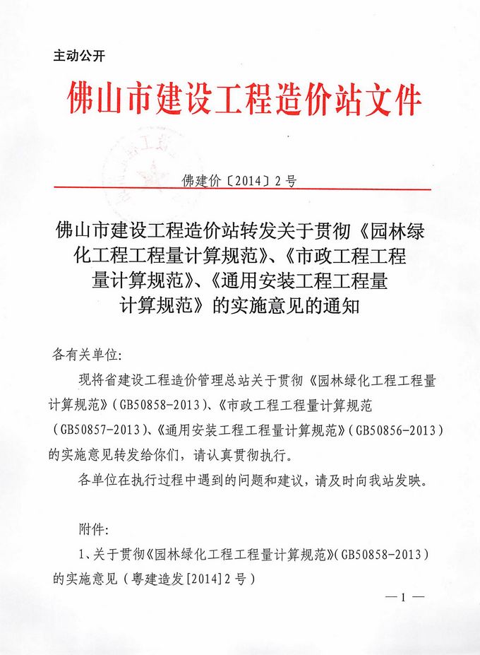 佛山市建設(shè)工程造價(jià)站轉(zhuǎn)發(fā)關(guān)于貫徹《園林綠化工程工程量計(jì)算規(guī)范》、《市政工程工程量計(jì)算規(guī)范》、《通用安裝工程工程量計(jì)算規(guī)范》的實(shí)施意見的通知