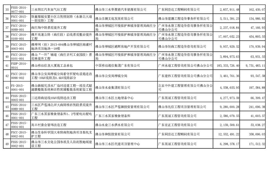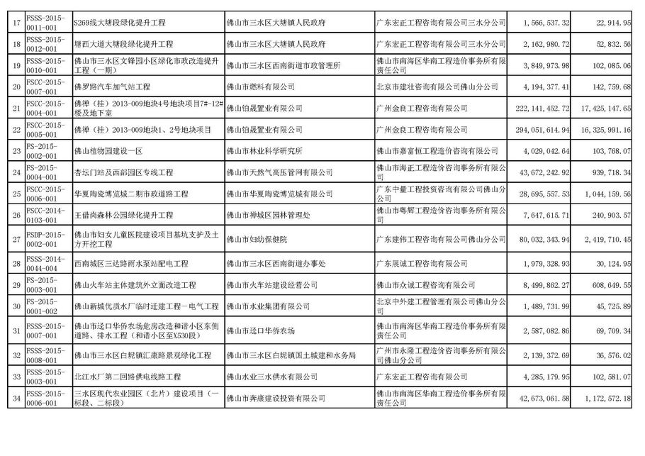 佛山市招標控制價備案情況表(2015-01-01至2015-03-31)