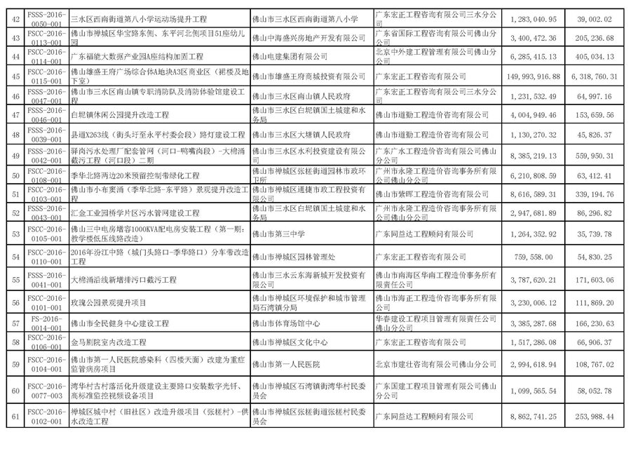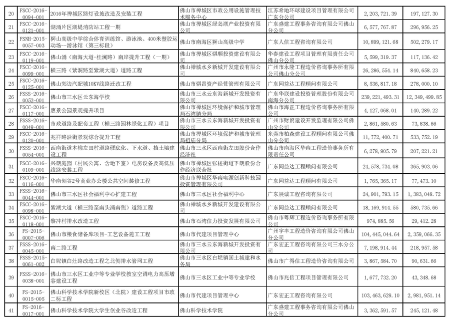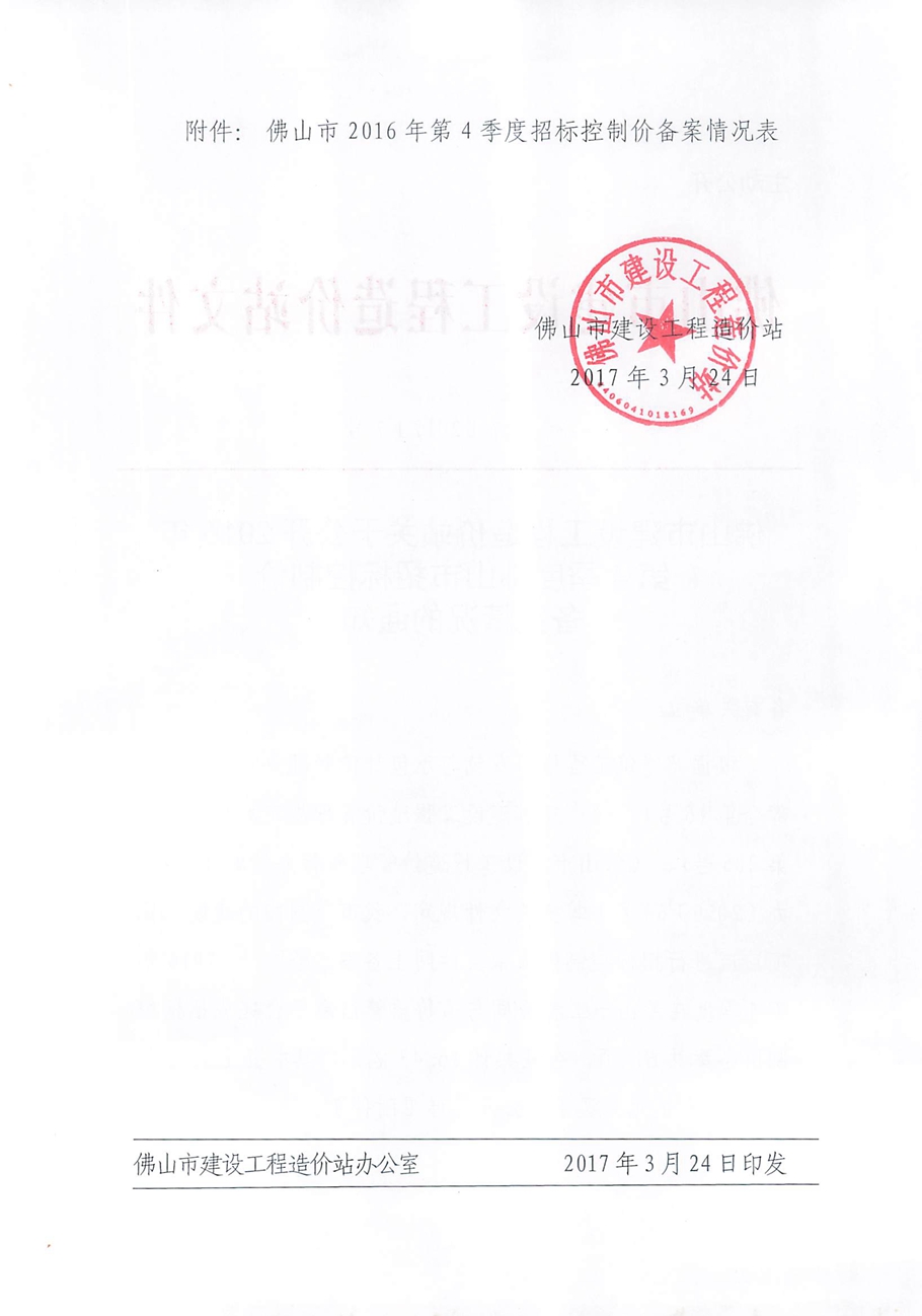佛山市建設工程造價站關于公開2016年第4季度佛山市招標控制價備案情況的通知