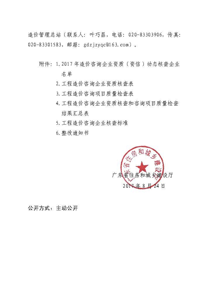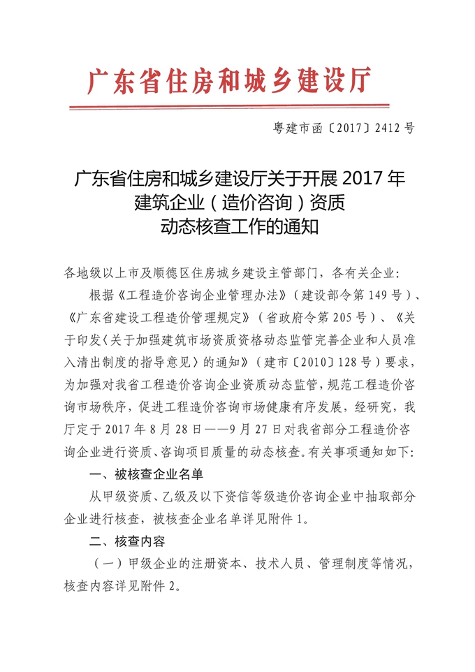 廣東省住房和城鄉建設廳關于開展2017年建筑企業(造價咨詢)資質動態核查工作的通知