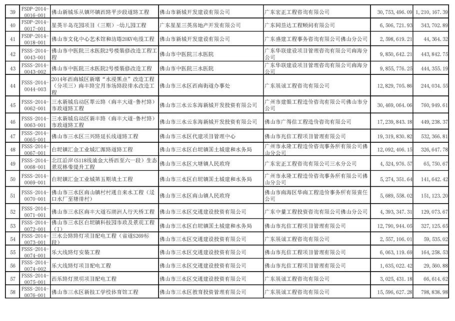 佛山市招標(biāo)控制價備案情況表(2014-10-01至2014-12-31)