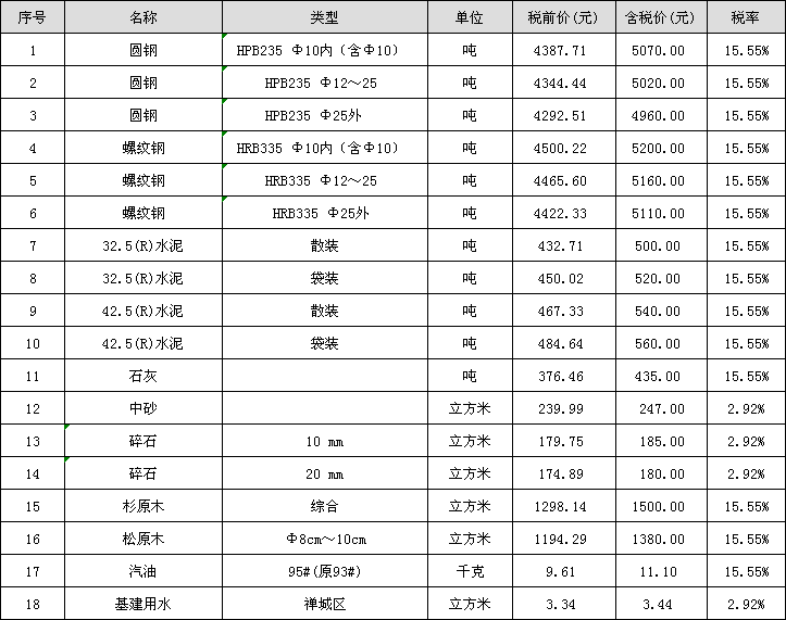 周轉(zhuǎn)材料租賃價(jià)格信息