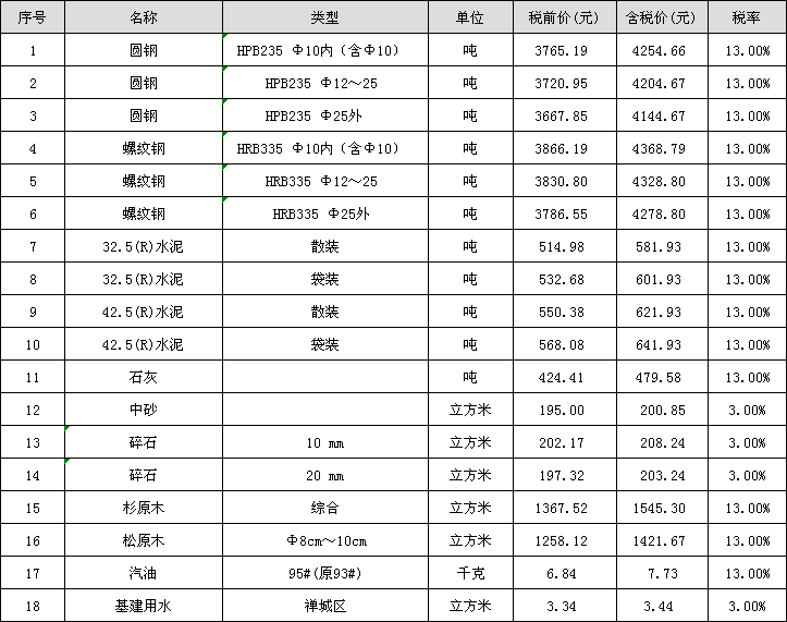 周轉(zhuǎn)材料租賃價(jià)格信息