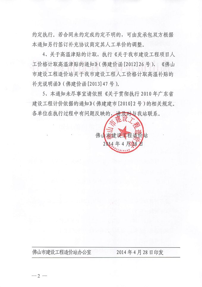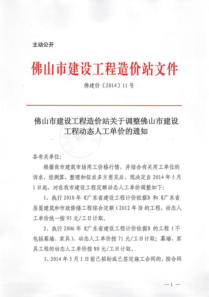 佛山市建設工程造價關于調整佛山市建設工程動態人工單價的通知