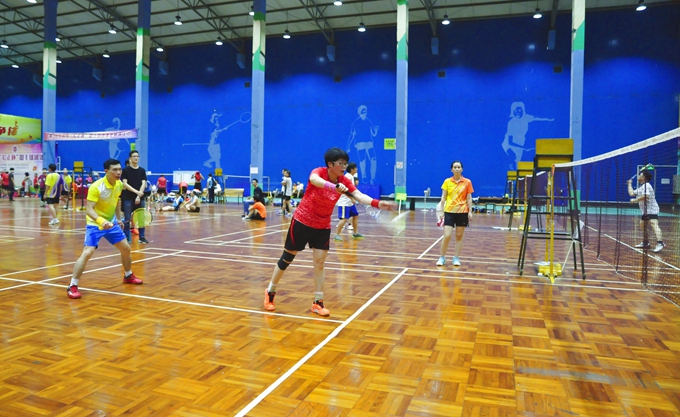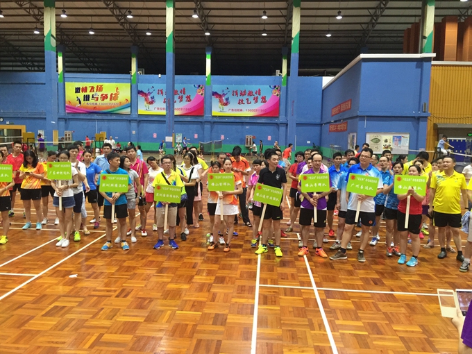 7月2日,佛山市工程造價與招標(biāo)協(xié)會在張槎體育館羽毛球場隆重舉行了2016年“宏正杯”羽毛球團(tuán)體賽。仲夏七月,本應(yīng)是驕陽似火,也許是老天爺?shù)木祛櫍@兩天都不時瓢潑著大雨,沖走了暑熱,使我們運(yùn)動員得以更好地發(fā)揮。8時許,24支隊(duì)伍齊刷刷地排好了整齊的隊(duì)列,進(jìn)行了簡短的開幕式后,在張思中會長和陳敏珊副會長的鼓勵聲中拉開了比賽的序幕。