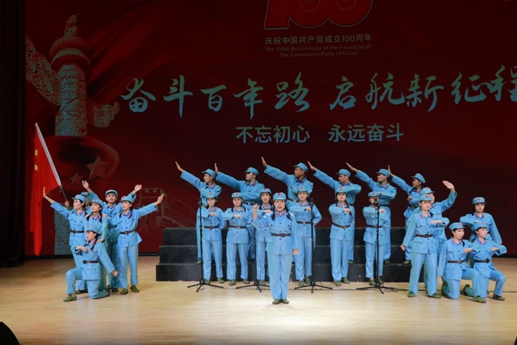 《沒有共產(chǎn)黨就沒有新中國》拉開匯演序幕。(黃釋心 攝)