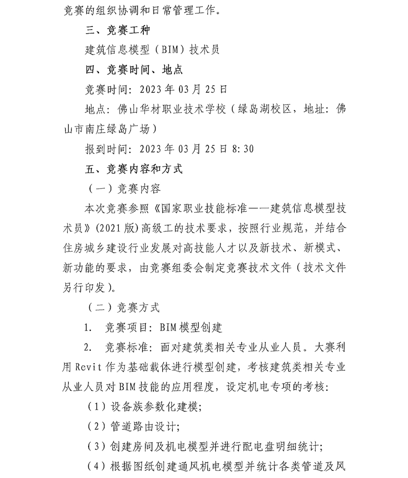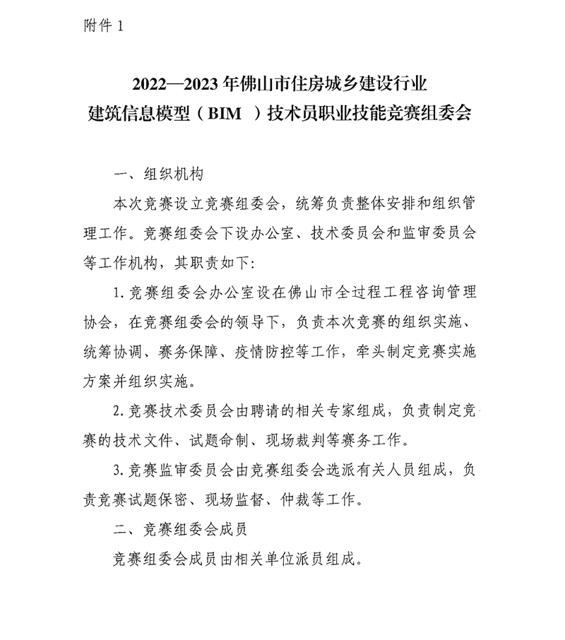 附件1:2022-2023年佛山市住房城鄉建設行業建筑信息模型(BIM )技術員職業技能競賽組委會