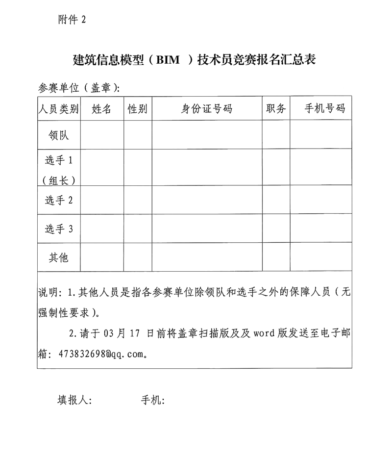 附件2:建筑信息模型(BIM )技術員競賽報名匯總表