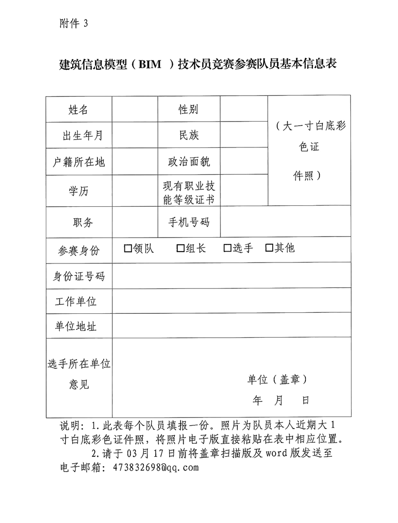附件3:建筑信息模型(BIM )技術員競賽參賽隊員基本信息表