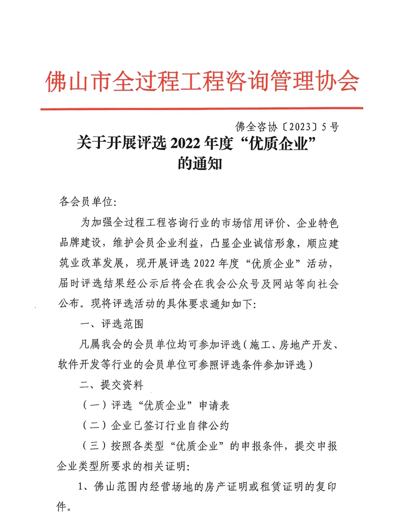 附件3:佛山市全過程工程咨詢管理協會優質工程造價類企業評選標準