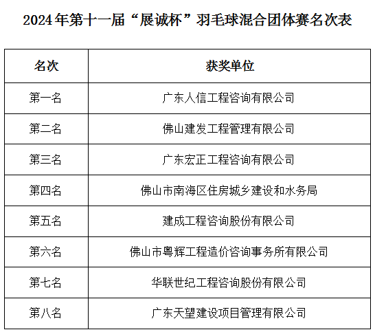 “展誠”相遇 無“羽”倫比 | 佛山市全過程工程咨詢管理協(xié)會2024年第十一屆“展誠杯”羽毛球團體賽圓滿落幕