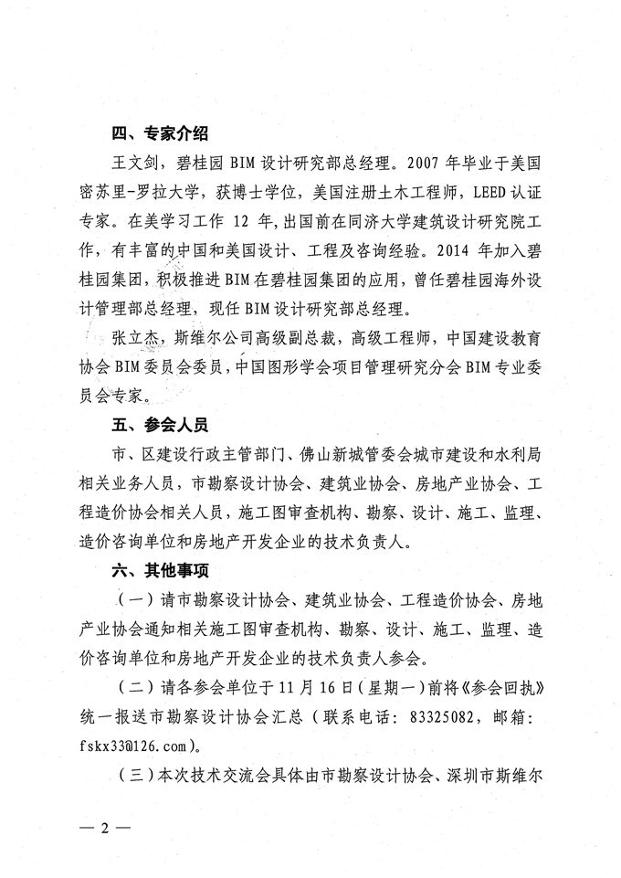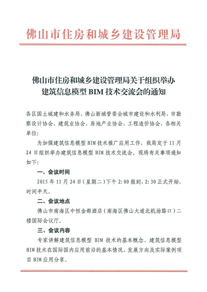 佛山市住房和城鄉建設管理局關于組織舉辦建筑信息模型BIM技術交流會的通知