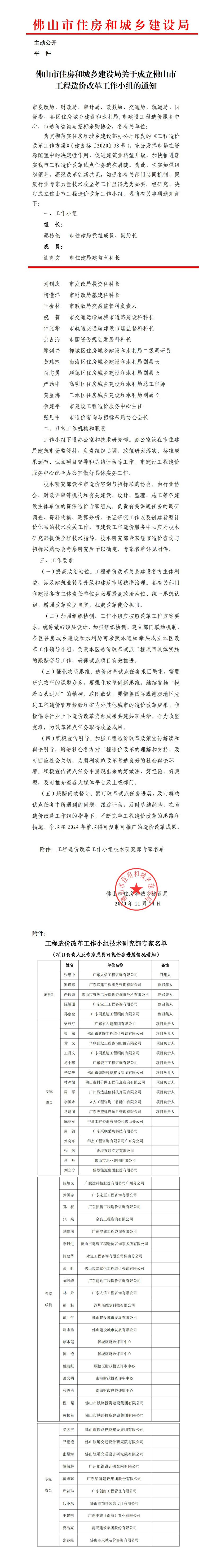 附件1:佛山市住房和城鄉(xiāng)建設局關于成立佛山市工程造價改革工作小組的通知