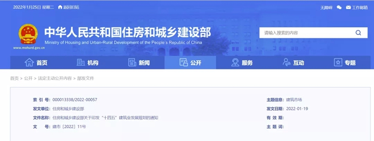 住房和城鄉建設部關于印發“十四五”建筑業發展規劃的通知