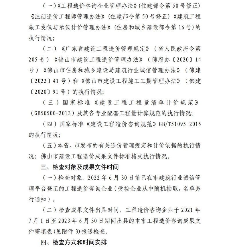 佛山市住房和城鄉建設局關于實施2023年度工程造價咨詢企業執業行為和質量專項檢查安排的通知
