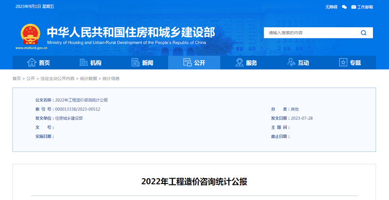 現(xiàn)將我部2022年工程造價咨詢統(tǒng)計數(shù)據(jù)公布如下: