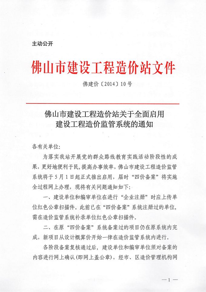 佛山市建設(shè)工程造價站關(guān)于全面啟用建設(shè)工程造價監(jiān)管系統(tǒng)的通知