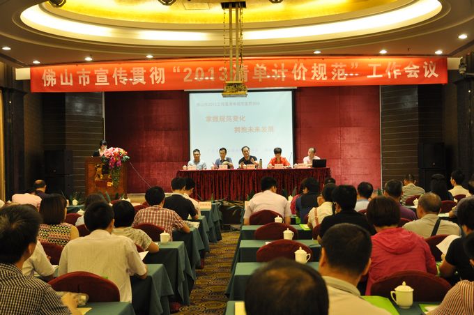 2013年8月16日上午,佛山市宣傳貫徹“2013清單計價規(guī)范”工作會議在佳寧娜酒店召開,市住建管理局副局長林振漢出席會議并作了重要講話,省建設(shè)工程造價管理總站楊永副站長和賴銘華科長到會作了指示和精彩宣講,在主席臺就坐的還有市住建管理局建筑市場監(jiān)管科古瑞芳科長和市造價站站長余建平,會議由市造價站黃曉敏副站長主持。全市各區(qū)建設(shè)主管部門分管領(lǐng)導(dǎo)和主辦科室負責人,市發(fā)改局、市審計局、市財政局、市代建項目管理中心、各區(qū)國土城建和水務(wù)局、佛山新城城建局、市水業(yè)集團公司、燃氣集團公司、鐵投公司、工程造價咨詢企業(yè)、招標代理機構(gòu)等代表約200人參加了會議。
