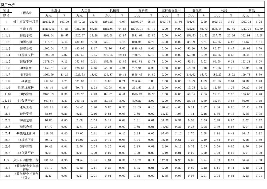 佛山市2015年第3季度技術經濟指標分析—某學校項目案例