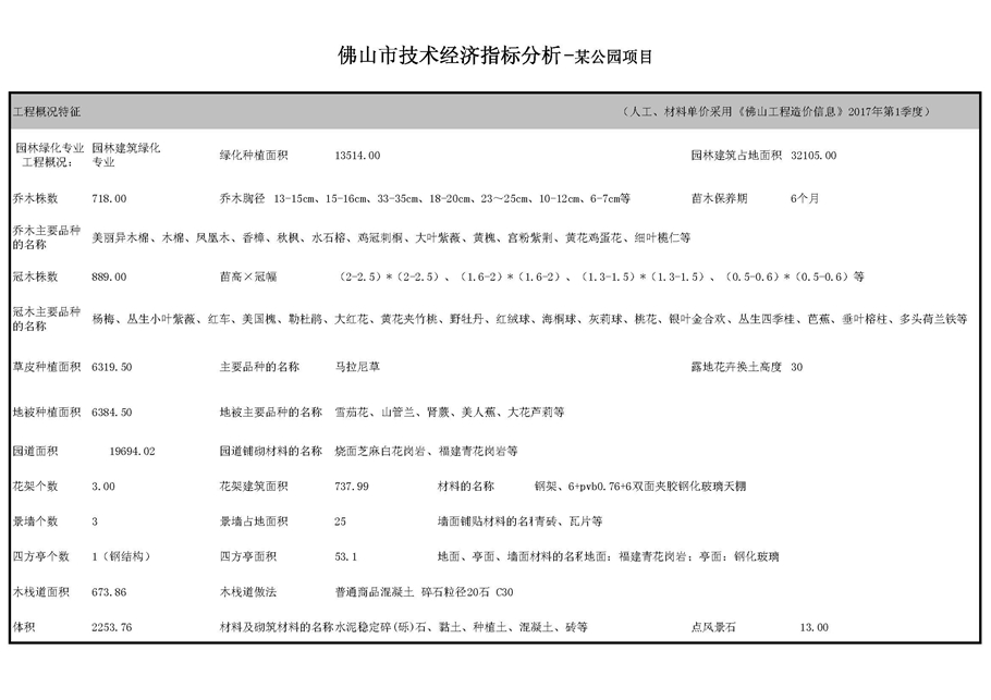 佛山市2017年第2季度技術經濟指標分析—某公園項目案例