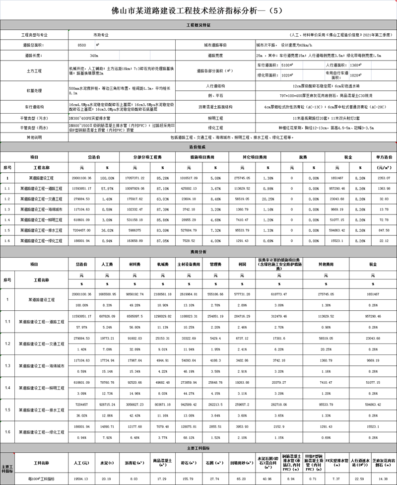 佛山市某道路建設(shè)工程技術(shù)經(jīng)濟(jì)指標(biāo)分析—(5)