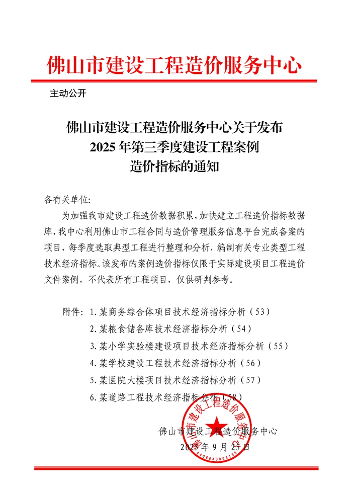 轉(zhuǎn)發(fā) | 佛山市建設(shè)工程造價服務(wù)中心關(guān)于發(fā)布2025年第三季度建設(shè)工程案例造價指標的通知