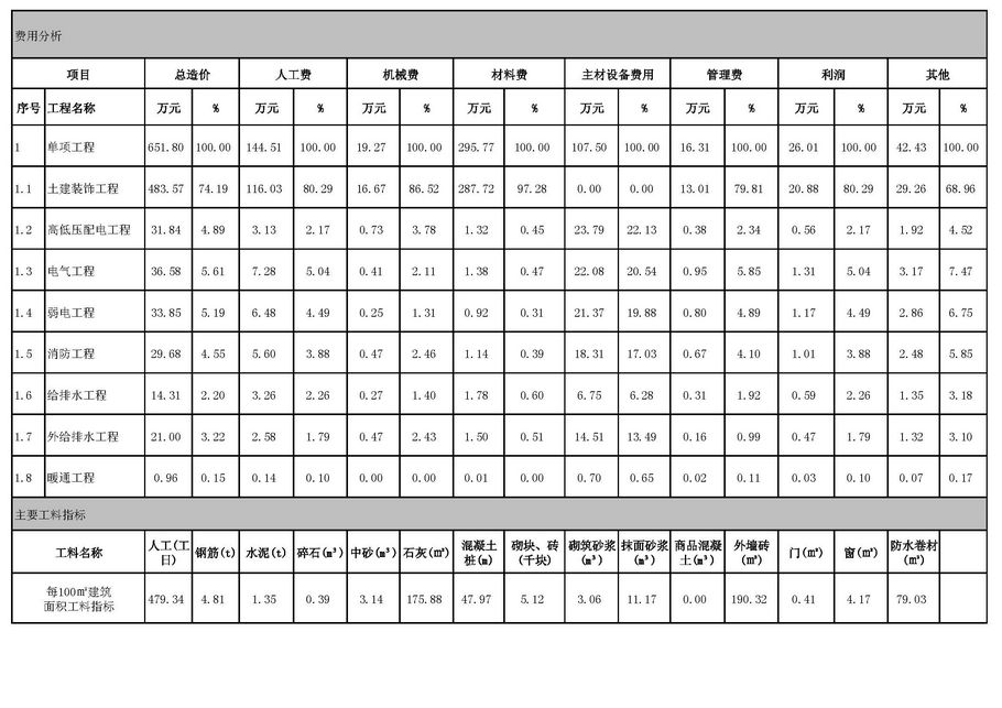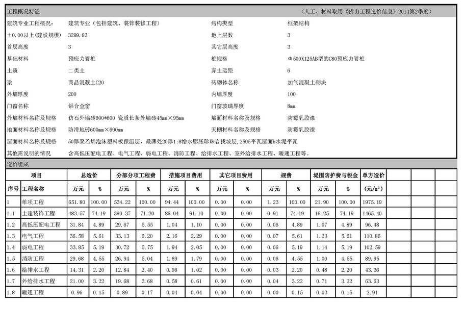 佛山市2015年第1季度技術經濟指標分析—某幼兒園項目案例