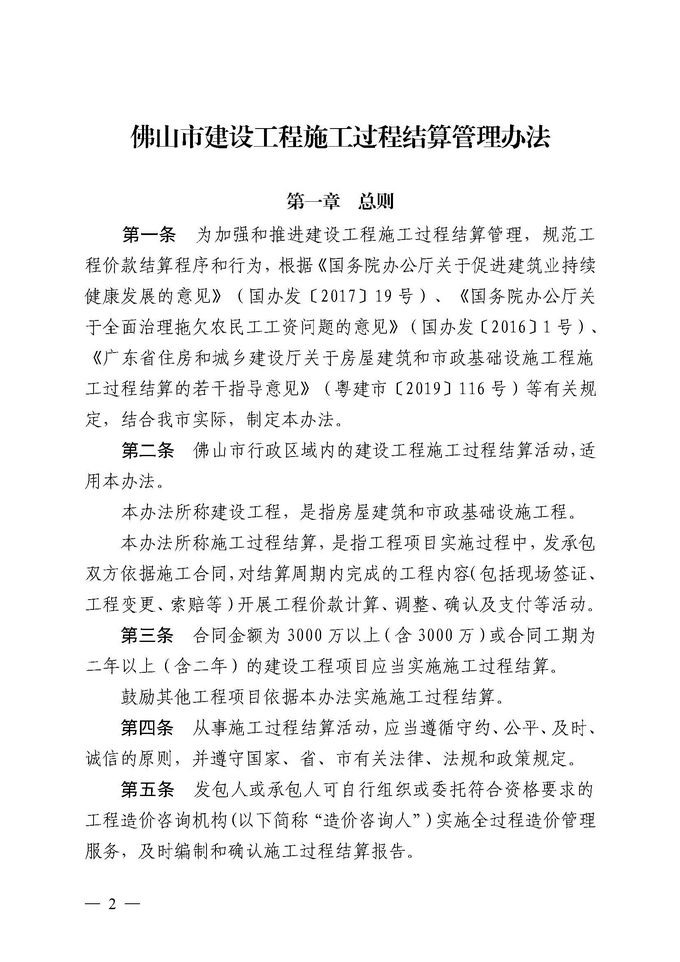 佛山市住房和城鄉建設局關于印發佛山市建設工程施工過程結算管理辦法的通知