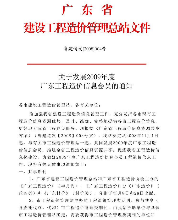 關(guān)于發(fā)展2009年度廣東工程造價(jià)信息會(huì)員的通知